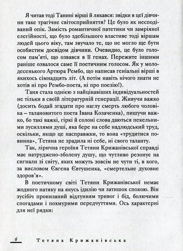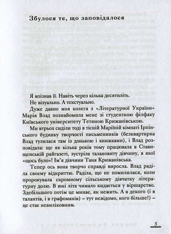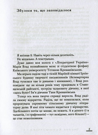 До нової книжки Тетяни Крижанівської увійшли поезії, які публікуються вперше і написані впродовж останніх років.