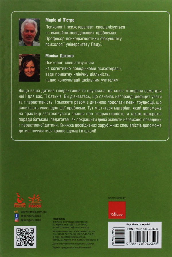 поради батькам і педагогам, як покращити деякі аспекти небажаної поведінки гіперактивної дитини. Книжка досвідчених зарубіжних спеціалістів допоможе дитині почуватися краще вдома і в школі!