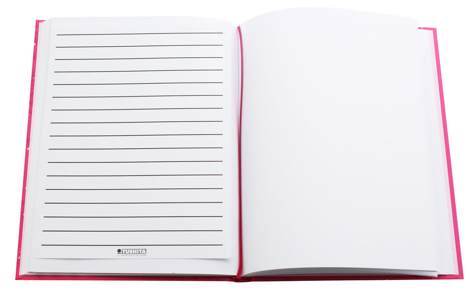 140 качественных белоснежных страниц, яркая твёрдая обложка, ниточный переплёт, плетёная закладка и разлинованная подложка - всё это вы найдёте в блокноте Tushita!