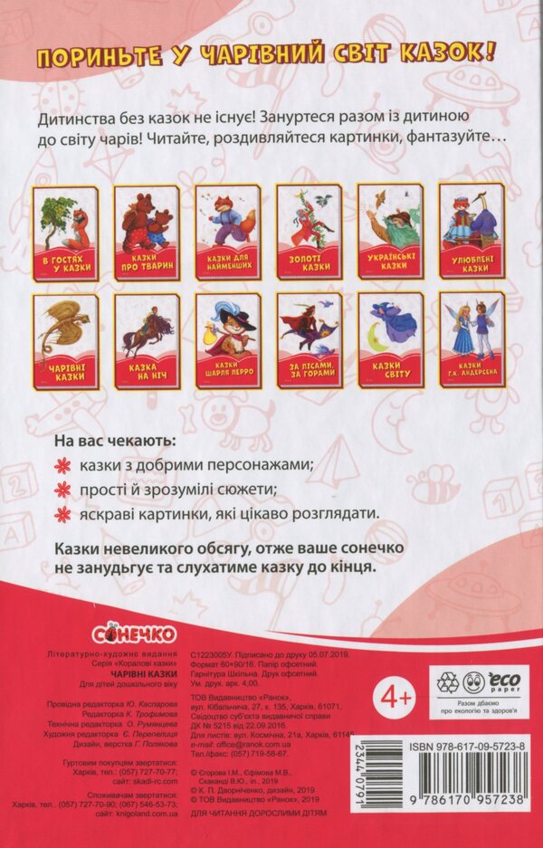 Серія найулюбленіших казок дитинства. На дитину чекають добрі герої, прості й зрозумілі сюжети та ілюстрації, які можна роздивлятися знову і знову. Усі тексти адаптовані для дітей. У кожній книзі зібрано кілька казок.
