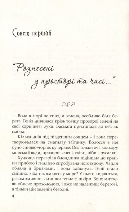 Роман 'Вінок сонетів' написаний у співавторстві, де кожен автор веде партію свого персонажа. Мова йде про складні, заплутані, життєві обставини. Життя і смерть, кохання і зрада, дружба і віроломство, відчай і віра у краще - усьому знайшлося місце.