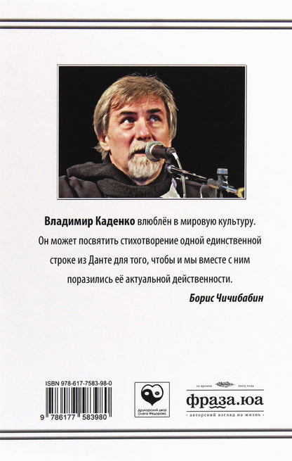 Владимир Каденко влюблён в мировую культуру. Он может посвятить стихотворение одной единственной строке из Данте для того, чтобы и мы вместе с ним поразились её актуальной действенности.
