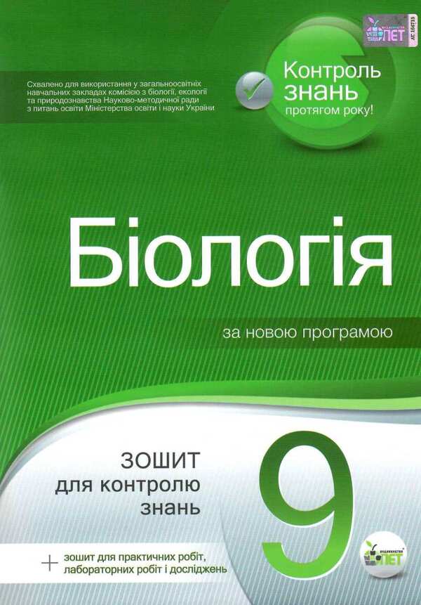 Біологія. 9 клас. Зошит для контролю знань (+ зошит для практичних робіт, лабораторних робіт і досліджень). Biology. Grade 9. Notebook For Knowledge Control (+ Notebook For Practical Work, Laboratory Work And Research)
