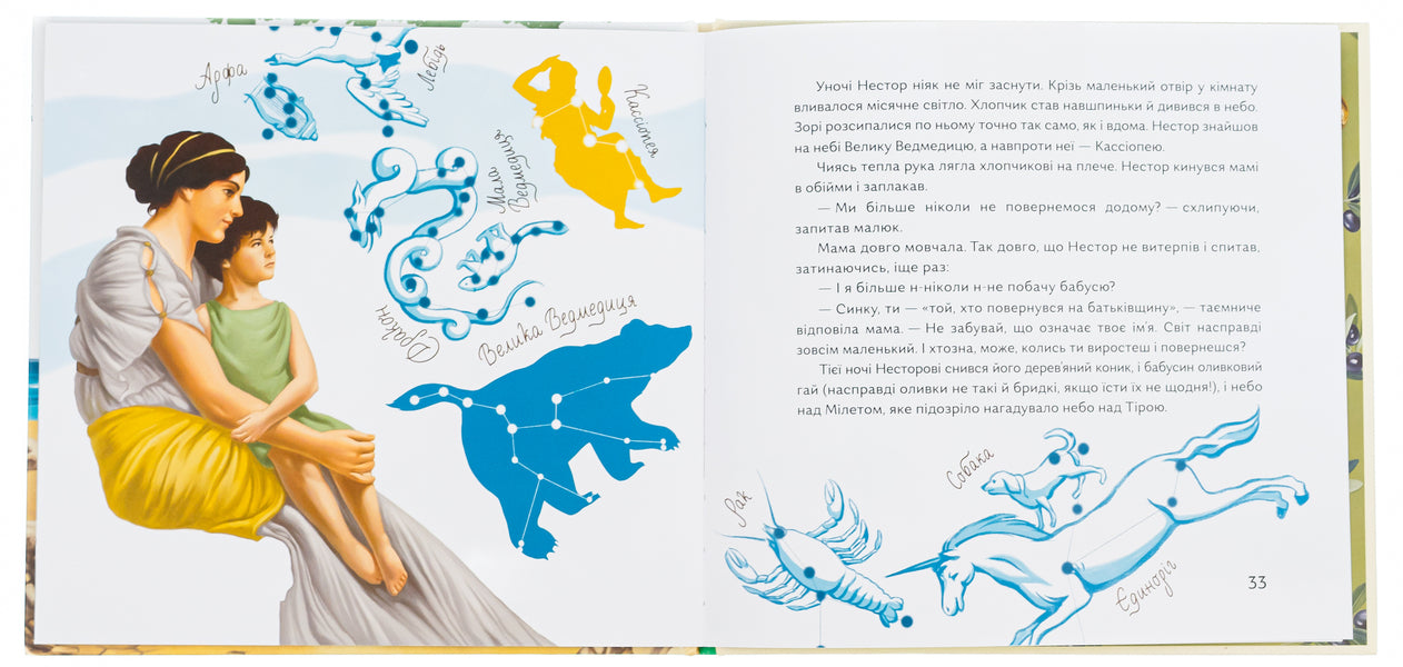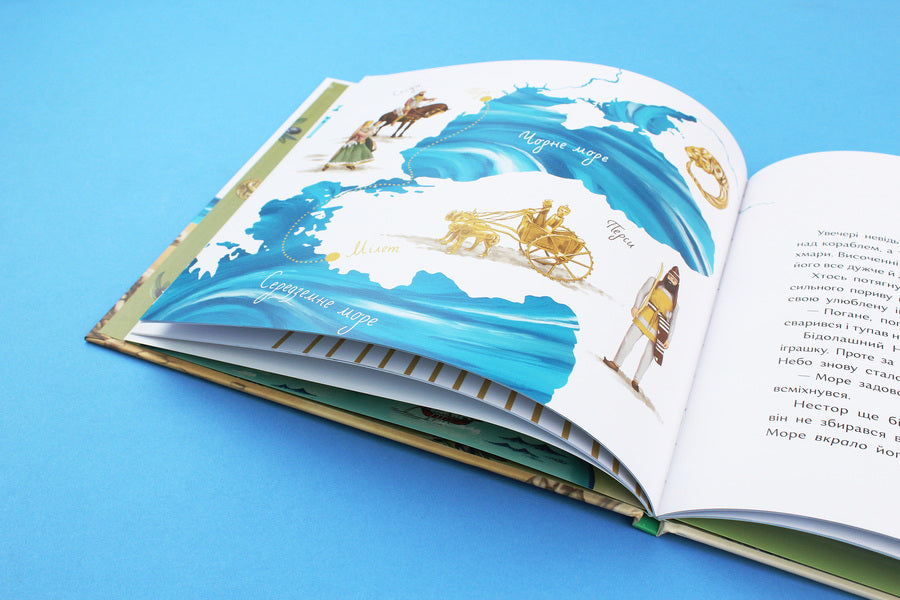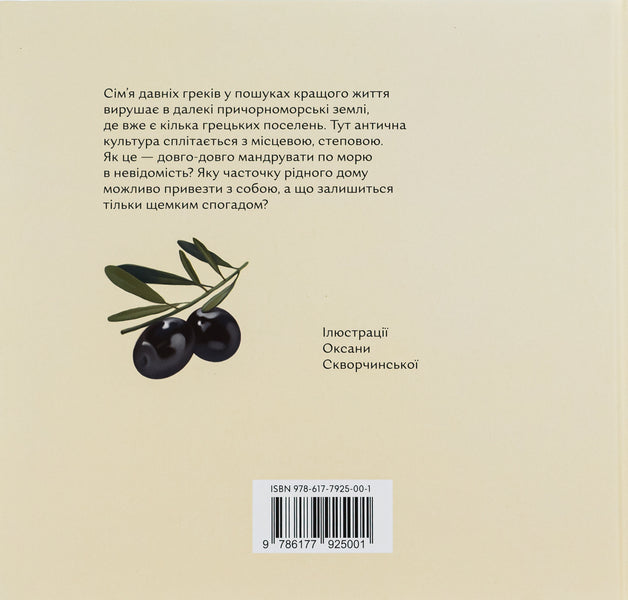 Нестор з сім’єю вирушає на кораблі з грецького міста Мілет до Тіри, де буде їхня нова домівка. В Мілеті залишилася його бабуся, яка подарувала йому в дорогу мішечок з оливками. Ніщо не радувало героя, хотілося повернутися додому та ще й капосне море забрало його улюблену іграшку — дерев’яного коника. Та врешті корабель причалив до берега міста, що має стати новим домом для мандрівників. Нестор знайде тут друзів, а оливковий сад, посаджений переселенцями, нагадуватиме йому про стареньку бабусю й полишене попереднє житло.