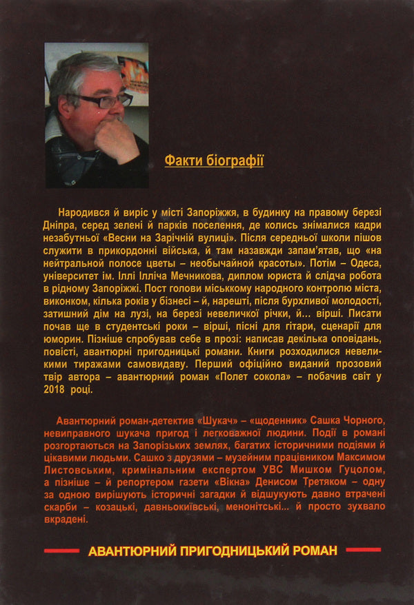 Пригодницький роман про приватного детектива і його друзів, що вирішують історичні загадки, водночас шукаючи скарби — козацькі, давньокиївські, менонітські... й просто зухвало вкрадені. Події в романі розгортаються на багатих історичними подіями Запорізьких землях.