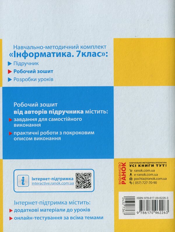 Посібник містить вправи для самостійного виконання; та практичні роботи з покроковим описом виконання.Призначено для учнів 7 класів, закладів загальної середньої освіти та вчителів інформатики.SPECIFICATIONS: