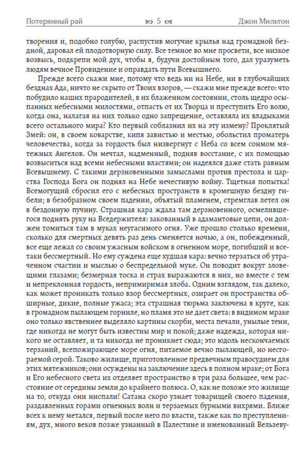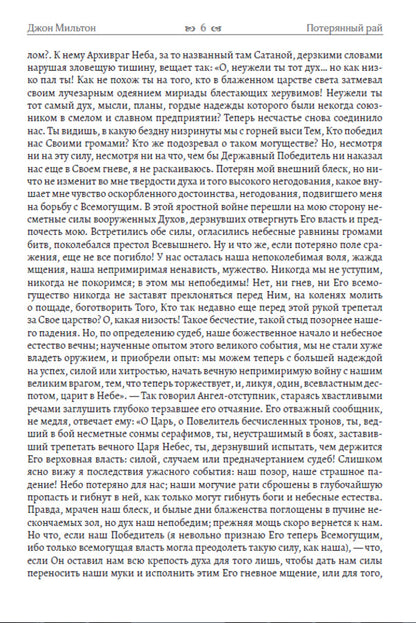 Поэма 'Потерянный рай', созданная величайшим британским поэтом и публицистом Джоном Мильтоном — одно из самых замечательных явлений в английской литературе 17 века. В творении, посвященном христианской теме грехопадения, пуританину Мильтону удивительно удалось совместить чувства, стиль и дух античности и Возрождения, нотки прометеевского свободолюбия и гуманистического опыта возвеличивания человека. Однако автор напоминает, что источник всех зол — та нездоровая жажда свободы, в основе которой лежит гордость и самопревозношение. Книга представлена в прекрасном и мелодичном прозаическом переводе, осуществленном А. Шульговской в конце 19 века.