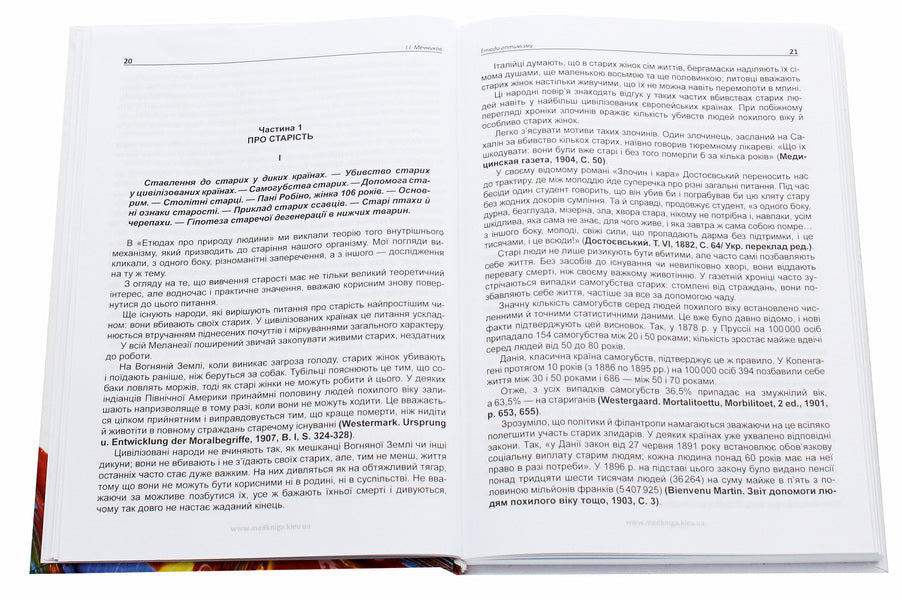 Перше видання українською мовою відомих 'Етюдів оптимізму' видатного вітчизняного вченого-дослідника Іллі Ілліча Мечникова, вихідця з Харківщини, 'сина бездержавної країни', Людини Світу, Нобелівського лауреату 1908 року, який здобув свою світову славу в Пастерівському інституті (Франція).