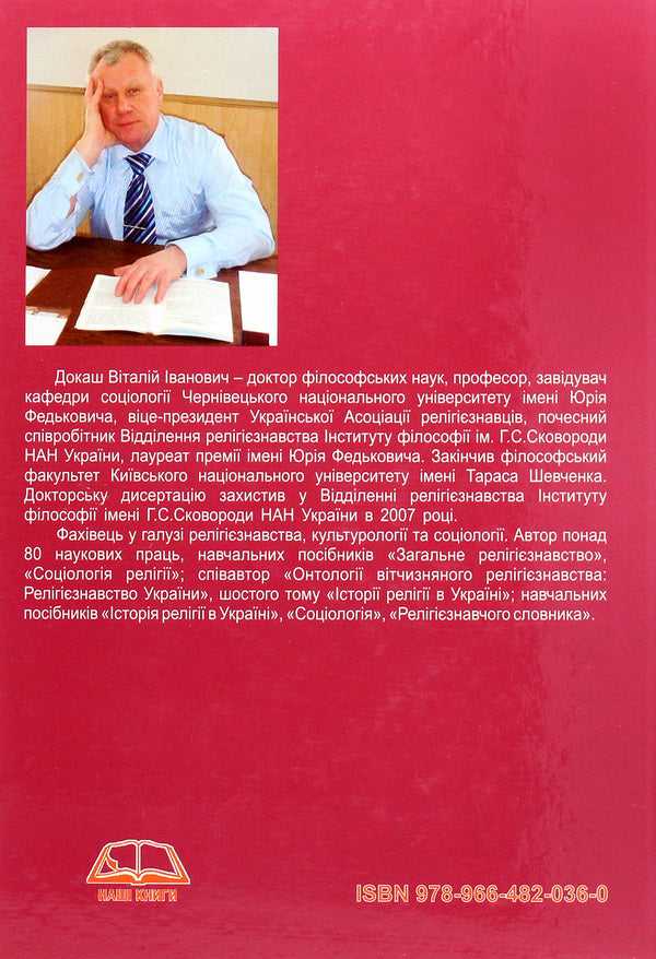 У посібнику розглядаються теоретичні аспекти, висвітлюється місце та роль релігії в соціально-культурному процесі. Детально розглянуто ті конфесії, які поширені на території України. Додано витяги із законів України та міжнародних нормативних актів, які стосуються свободи совісті, статистичні матеріали про стан релігійної мережі і динаміку її зміни та релігієзнавчий словник.