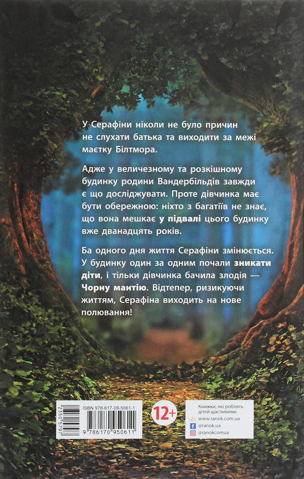 Після перемоги над чоловіком у Чорній мантії Серафіна виходить з тіні підвалу до людей. Відтепер дівчинка — повноправна захисниця маєтку. Проте смерть пана Торна, колишнього володаря Чорної мантії, привела до маєтку детектива. Його способи розслідування та питання всім здаються підозрілими. Що замислив чоловік та чи впорається Серафіна з новою небезпекою, що загроджує всім мешканцям Білтмора?SPECIFICATIONS: