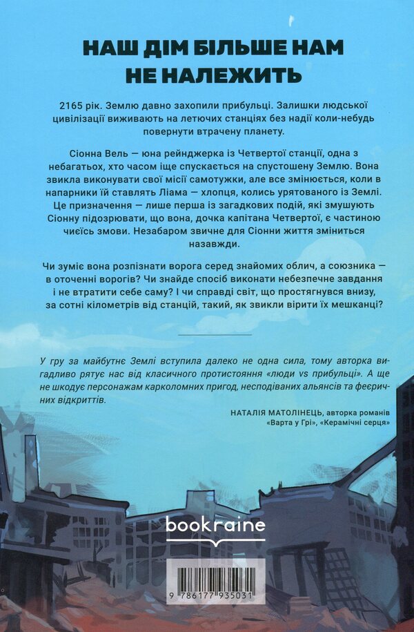 2165 рік. Землю давно захопили прибульці. Залишки людської цивілізації виживають на летючих станціях без надії коли-небудь повернути втрачену планету. Сіонна Вель — юна рейнджерка із Четвертої станції, одна з небагатьох, хто часом іще спускається на спустошену Землю. Вона звикла виконувати свої місії самотужки, але все змінюється, коли в напарники їй ставлять Ліама – хлопця, колись урятованого із Землі. Це призначення — лише перша із загадкових подій, які змушують Сіонну підозрювати, що вона, дочка капітана Четвертої, є частиною чиєїсь змови. Незабаром звичне для Сіонни життя зміниться назавжди.