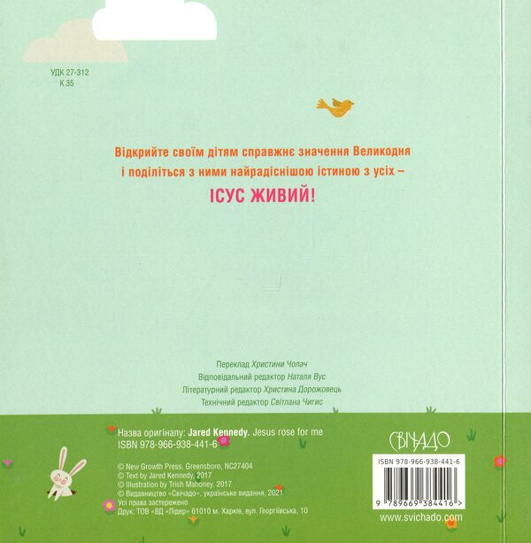 Як пояснити, чому Він помер за нас, але є сильнішим за смерть?Впоратися із цим непростим завданням допоможе книжка “Ісус воскрес для мене”.Її адресовано дітям від 3 до 7 років. Завдяки зручному формату і яскравим ілюстраціям ця книжечка-картонка стане гарним подарунком для малечі на Великдень. І доброю ідеєю для сімейних читань під час Великого посту.SPECIFICATIONS: