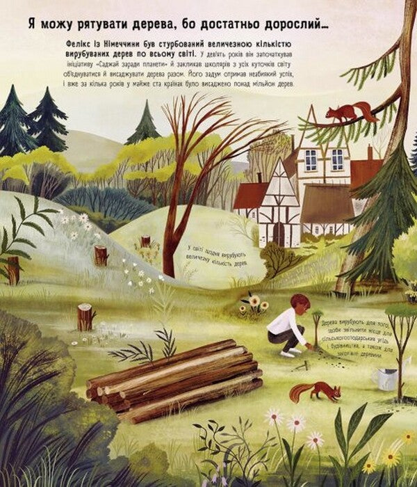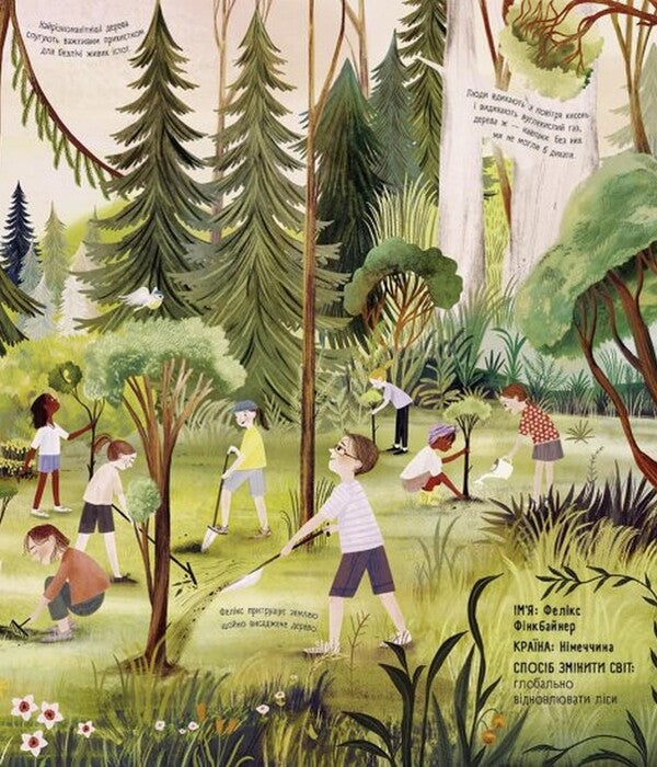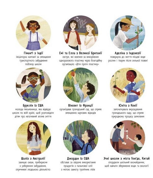 Як дитина може врятувати планету? Наприклад, прочитавши цю книжку. Тут уміщено розповіді про дванадцятьох школярів-екоактивістів з усього світу, які мотивують не лише дітей, але й дорослих. Герої книжки свідомі, небайдужі, вигадливі, тож роблять усе можливе для збереження довкілля. Хтось захищає носорогів в Африці, хтось прибирає узбережжя в Австралії, а хтось компостує сміття в Україні.