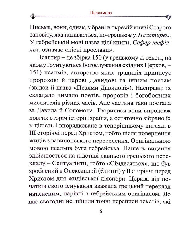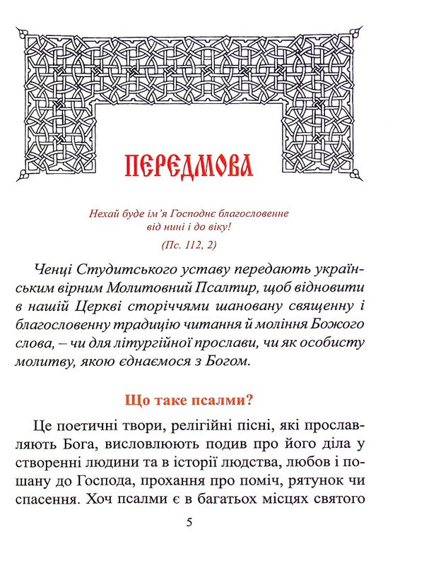 Видання дещо відрізняється від попереднього, яке було здійснене в Римі 1990 року, а саме: стихи псалмів розділено ритмічними паузами, додано “Чин по відході душі” та вказівки, як читати Псалтир при померлих. Крім самих псалмів подаємо і молитви, узяті з Псалтиря, що його видав за благословенням Слуги Божого Митрополита Андрея Шептицького Ставропігійський Інститут у Львові 1901 року. В кінці видання подано покажчик-устав читань катизм на богослуженнях.