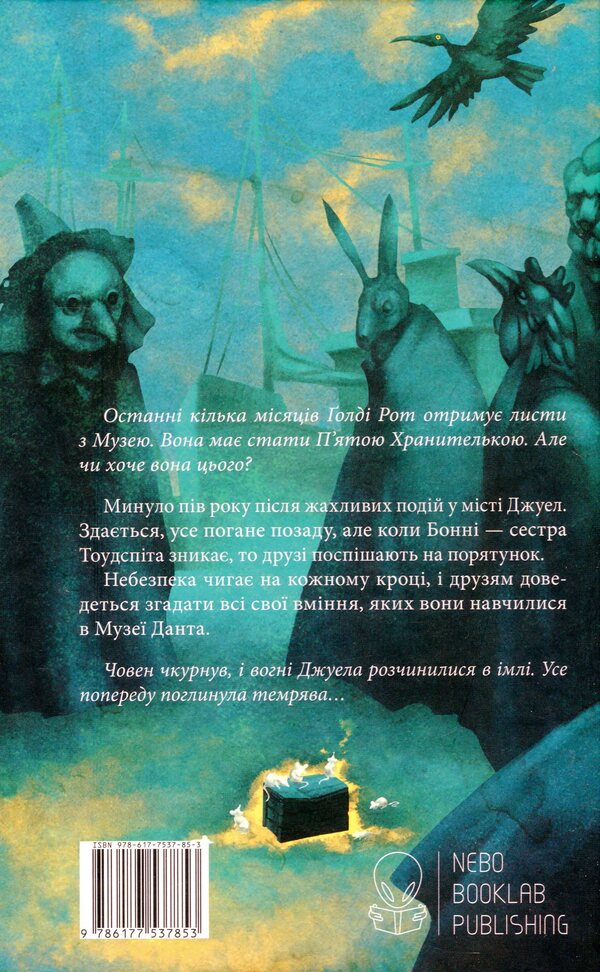 Минуло пів року після жахливих подій у місті Джуел. Здається, усе погане позаду, але коли Бонні — сестра Тоудспіта зникає, то друзі поспішають на порятунок.Небезпека чигає на кожному кроці, і друзям доведеться згадати всі свої вміння, яких вони навчилися в Музеї Данта.Човен чкурнув, і вогні Джуела розчинилися в імлі. Усе попереду поглинула темрява...SPECIFICATIONS: