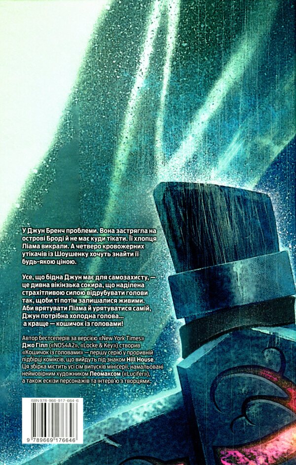 Усе, що бідна Джун має для самозахисту, — це дивна вікінзька сокира, що наділена страхітливою силою відрубувати голови так, щоби ті потім залишалися живими. Аби врятувати Ліама й урятуватися самій, Джун потрібна холодна голова… а краще — кошичок із головами!SPECIFICATIONS: