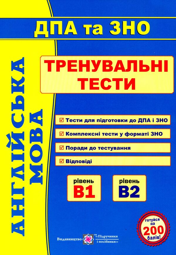 Посібник пропонує завдання рівнів В1 та В2 для підготовки до тестування з англійської мови. Зміст тестових завдань відповідає Програмі зовнішнього незалежного оцінювання з іноземних мов, затвердженої МОН України. Завдання з аудіювання, читання, використання мови та письма, а також поради для виконання сертифікаційної роботи допоможуть якісно підготуватися до складання іспиту.