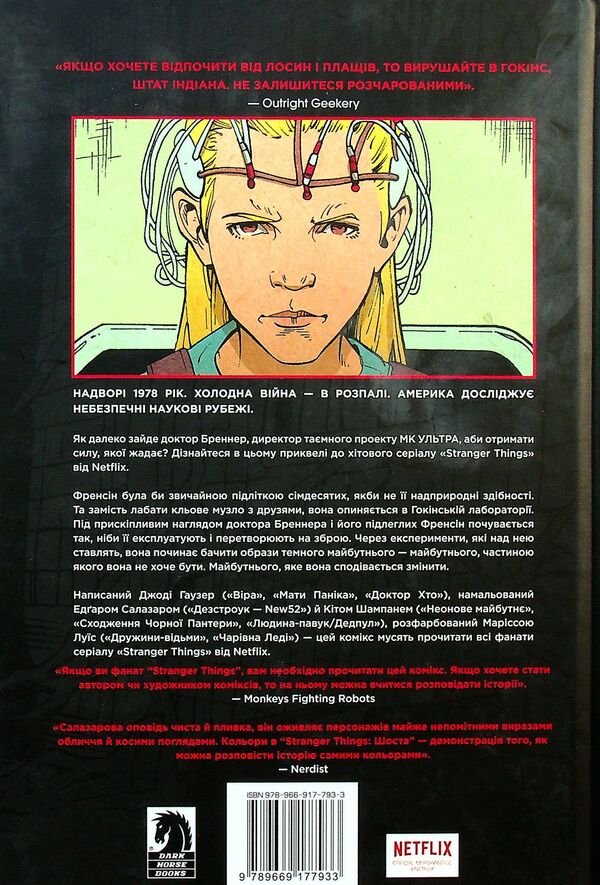Як далеко зайде доктор Бреннер, директор таємного проекту МК УЛЬТРА, аби отримати силу, якої жадає? Дізнайтеся в цьому приквелі до хітового серіалу 'Stranger Things' від Netflix.Френсін була би звичайною підліткою сімдесятих, якби не її надприродні здібності. Та замість лабати кльове музло з друзями, вона опиняється в Гокінській лабораторії. Під прискіпливим наглядом доктора Бреннера і його підлеглих Френсін почувається так, ніби її експлуатують і перетворюють на зброю. Через експерименти, які над нею ставлять, вона починає бачити образи темного майбутнього — майбутнього, частиною якого вона не хоче бути. Майбутнього, яке вона сподівається змінити.SPECIFICATIONS: