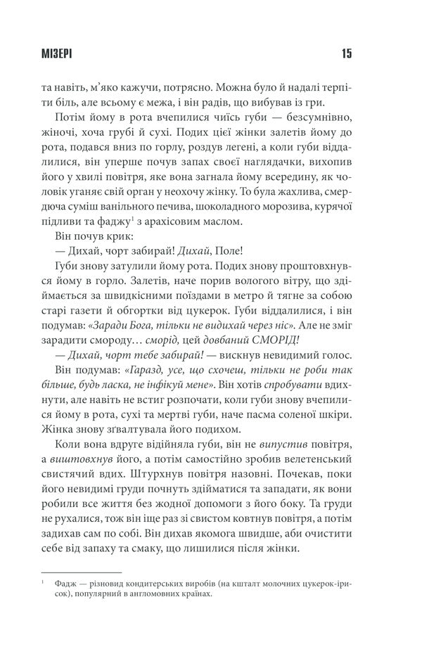 У житті успішного письменника Пола Шелдона була лише одна жінка, яку він щиро ненавидів, — героїня його мелодраматично-пригодницьких романів Мізері Честейн. 'Убивши' нарешті Мізері й добряче відсвяткувавши початок нового етапу творчості, письменник на глухій дорозі потрапляє в автокатастрофу. Опритомнівши в будинку колишньої медсестри Енні Вілкс, своєї 'найпалкішої шанувальниці', схибленої маніячки-вбивці, Пол Шелдон зрозуміє, що таке справжня ненависть, біль і жах і яку ціну має сплатити автор за своє творіння.