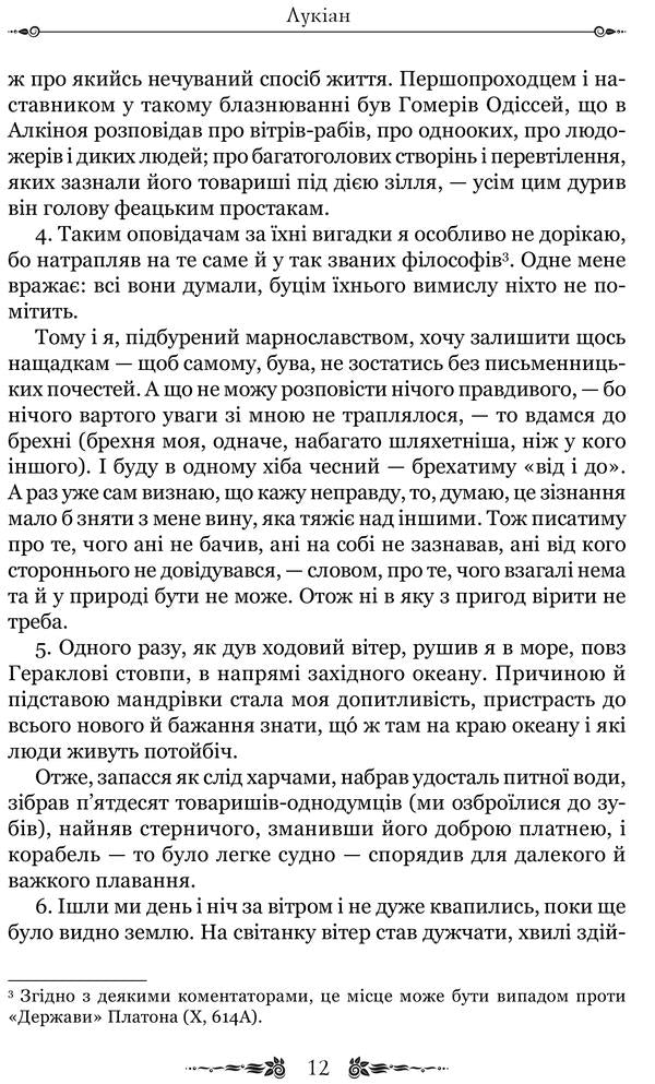 Серед тих, хто століттями вчить Європу сміятися й висміювати, уявляти й сумніватися, Лукіан Самосатський (бл. 120 р. — після 180 р.) — на чільному місці. Хтозна, чи написав би Томас Мор 'Утопію', а Джонатан Свіфт — 'Мандри Гуллівера', якби свого часу не надихнула їх Лукіанова 'Правдива історія'. Античність майже не залишила згадок про життя цього автора (хіба що скупі й геть не надійні автобіографічні свідчення), однак чудово зберегла його оповідання й діалоги, за якими — гострий розум, дивовижна ерудованість, жвава й невтомна уява, наснажена кінічним імпульсом. Крім 'Правдивої історії', мабуть, найвідомішого Лукіанового твору, до видання увійшли діалоги, які суттєво доповнюють письменницький портрет, — 'Двічі обвинувачений' і 'Нахлібник'.
