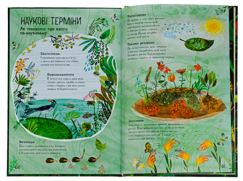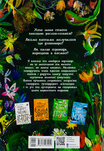 'Головні герої' цієї книжки — квіти. Вони пахнуть і смердять, ростуть в садах і на воді, живляться сонячною енергією та… м’ясом. А школярам і школяркам лишається тільки уважно читати, щоб ближче познайомитися з трояндами, маками, орхідеями, кактусами та іншими звичними й екзотичними квітами. Бонус для охочих розглядати малюнки — безліч інтерактивних завдань з пошуку деталей на сторінках.SPECIFICATIONS: