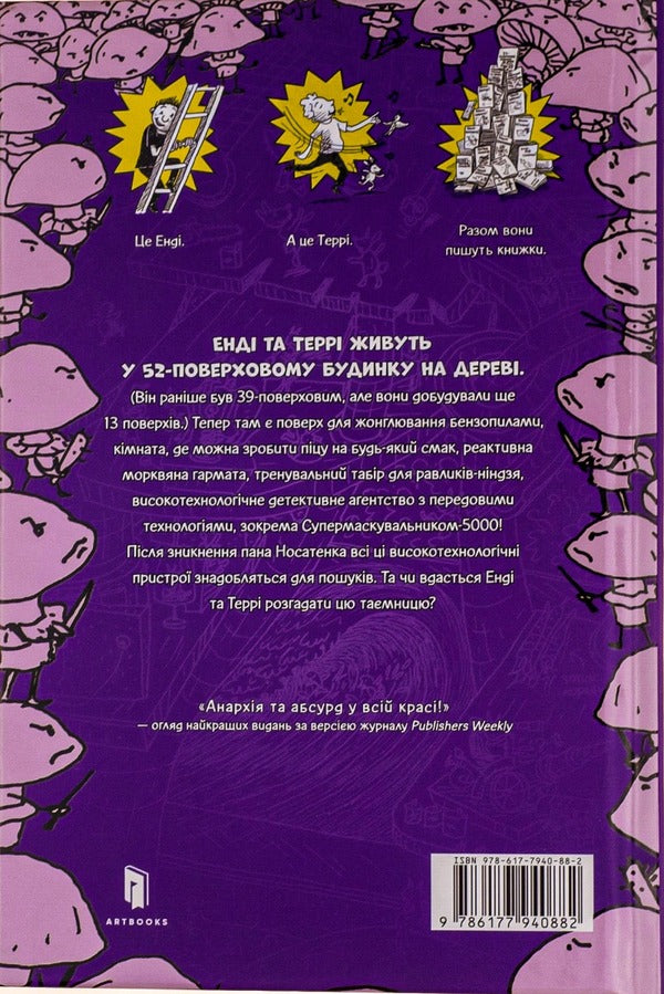 І знову ФАНТАСТИЧНІ нові захопливі пригоди двох друзів, яких ви вже дуже добре знаєте!Пан Носатенко пропав! Розкрити справу про зникнення такої важливої фігури під силу лише дуже тямущим детективам при повному озброєнні. На щастя, в 52-поверховому будинку на дереві є автомат для зміни зовнішності, детектор злочинців і навіть заколисливий порошок. Та що тут розповідати, стрибайте в летючу машину та швидше на пошуки доказів разом із дітьми!SPECIFICATIONS: