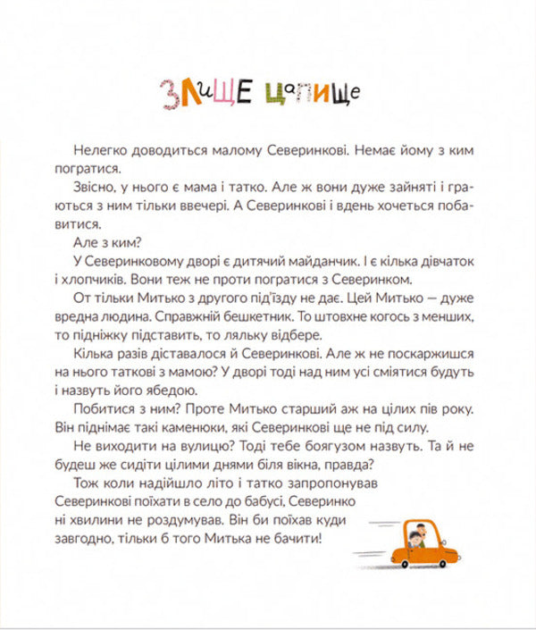 Весела і дотепна повістинка класика дитячої літератури Володимира Рутківського оповідає про дивовижну дружбу хлопчика Северинка та велетенського цапа, якого, може, і несправедливо, назвали Злюще Цапище. То тільки попервах, коли Северинко приїхав на літо в село до бабусі, Цапище добряче випробував на ньому свої роги. А далі — цілком несподівано — став найкращим другом хлопчика. Ось уже Северинко й не боїться Цапища — і морквою найсмачнішою з бабусиної грядки пригощає, і кленове гілля до землі прихиляє, адже молоде листя так смакує другові! А Цапище натомість Северинка та його приятельку на гойдалці розгойдує, а ще смішить своїми вибриками. А одного дня навіть рятує пташеня, яке випало з гнізда…