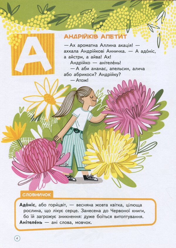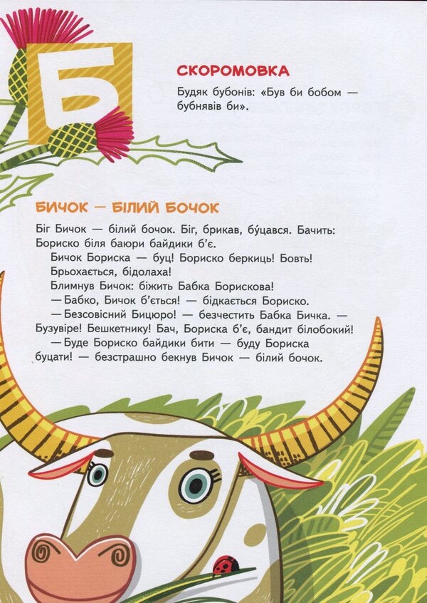 Вирішили, що вже час навчати малюка літер? Перед вами не просто абетка. Тут ви знайдете художні тексти, у яких геть усі слова починаються з однакової літери (тавтограми). Або в яких певна літера не зустрічається жодного разу! Можна пограти з малюком у детектива, що має відшукати певний звук у тексті, який читає дорослий.