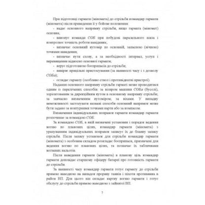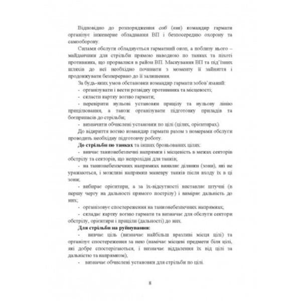 Цей методичний посібник містить настанови, рекомендації, та завдання щодо порядку обслуги гармати (міномету) під час ведення бойових дій в різних погодних умовах за різного ландшафту та місця дислокаці