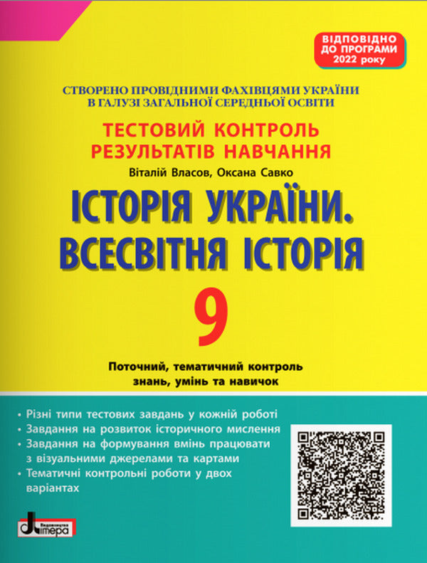 Історія України. Всесвітня Історія. 9 клас. Тестовий контроль результатів навчання (програма 2022 року). History Of Ukraine. World History. Grade 9. Test Control Of Study Results (2022 Program)