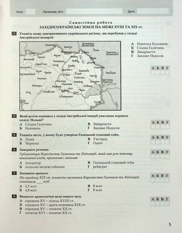 Цей посібник призначений для виконання письмових робіт з метою виявлення рівня опанування учнями основних предметних компетентностей та розвитку основних складників історичної свідомості.