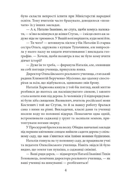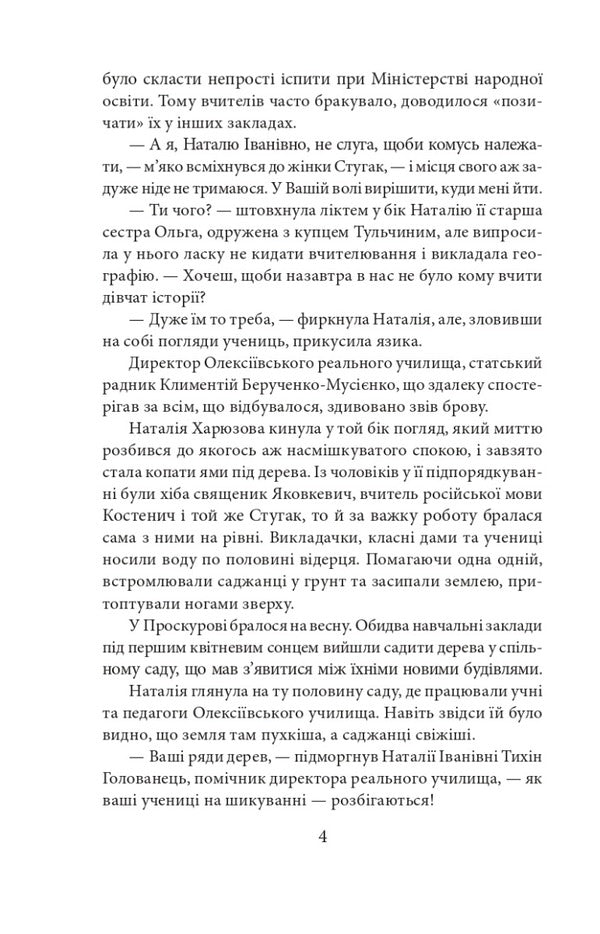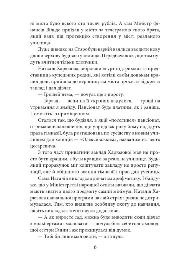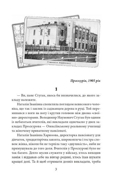 Наталія Харюзова, директорка приватного жіночого пансіонату в Проскурові, понад усе мріє, щоб заклад отримав статус гімназії. Бездоганна репутація — запорука успіху в цій справі. Але провокації недругів усе можуть звести на пси. Пансіонат опиняється у центрі політичних злочинів, а сестра директорки тікає від її надмірної опіки з коханим. Чи зможе Харюзова, яка й сама опиняється під арештом, вистояти і здійснити свою мрію? І головне — хто ж у цій історії справді на її боці?