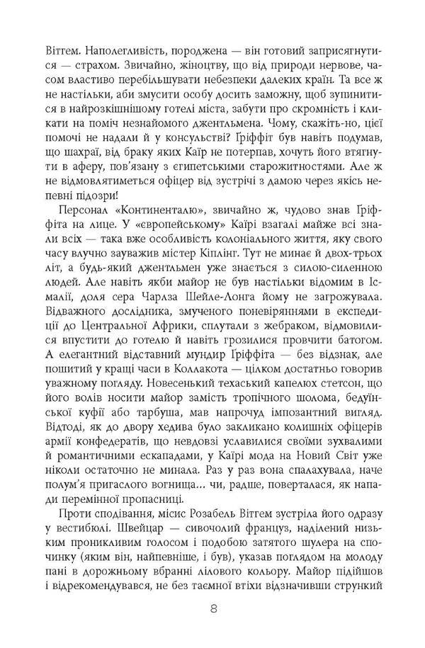 Колоніальний Єгипет — місце для чудес і пригод. Він манить шукачів скарбів і різного штибу авантюристів. Колишнього військового британської армії капітана Ґріффіта втягують у таємничу експедицію, очолювану багатим баронетом і ексцентричною леді, яка знається на зброї і не зважає на вікторіанську етику. Боротися ця компанія буде не тільки з вибагливою єгипетською погодою, а і з невідомими могутніми супротивниками. Під час небезпечної подорожі з’ясується, що скарб, до якого прямує експедиція,— це не золото чи коштовності, а влада над світом. Ключ до цієї влади прихований у давньому храмі, а путь знають лише Втрачені — особлива раса, що навчилась непомітно співіснувати поряд з людьми. Міфологія, пригоди, справжня дружба, змови, засідки і бої — у такій яскравій обгортці автор подає історію, що змушує задуматися про сенс життя і людські цінності.
