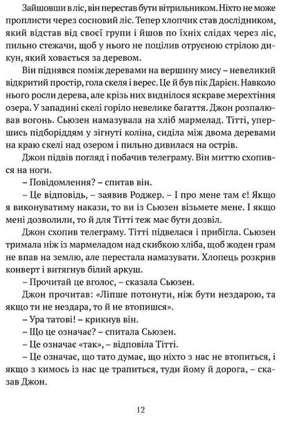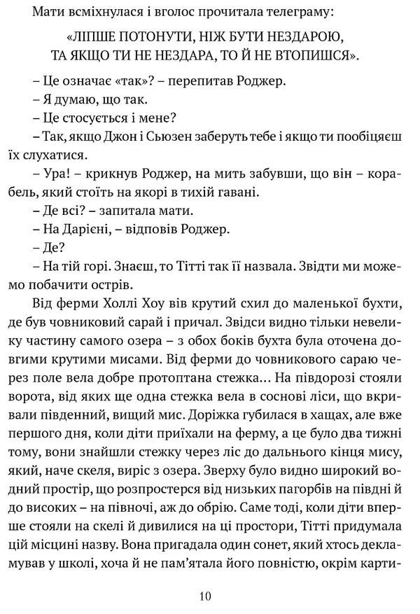 'Ластівки й Амазонки' — дитячий пригодницький роман англійського письменника Артура Ренсома. Літні канікули, табір на безлюдному острові, катання човнами, риболовля, битва з піратом і пошук скарбів. Діти Вокерів (Ластівки), опинившись на острові Дикої Кішки, несподівано виявляють на території чужий човен і знайомляться з його власницями, Ненсі та Пеггі Блекетт (Амазонки), які знають острів як свої п’ять пальців. І перш ніж неприязнь і суперництво переростуть у міцну дружбу, на Ластівок та Амазонок чекають непрості випробування на кмітливість, сміливість, командну згуртованість і дорослість. Для всіх, кого захоплює світ мандрів і цікавих пригод.