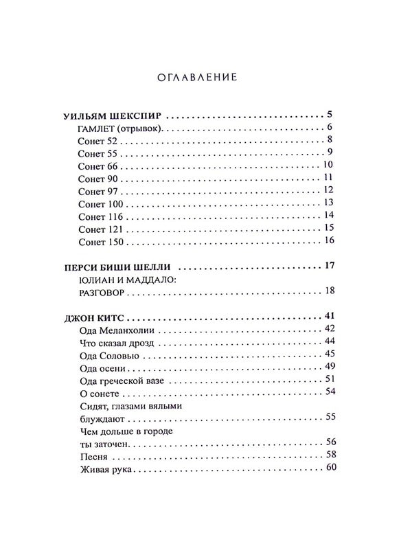 William Shakespeare, Percy Bysshe Shelley, John Keats, Emily Dickinson, Robert Frost / Уильям Шекспир, Перси Биш Шелли, Джон Китс, Эмили Дикинсон, Роберт Фрост