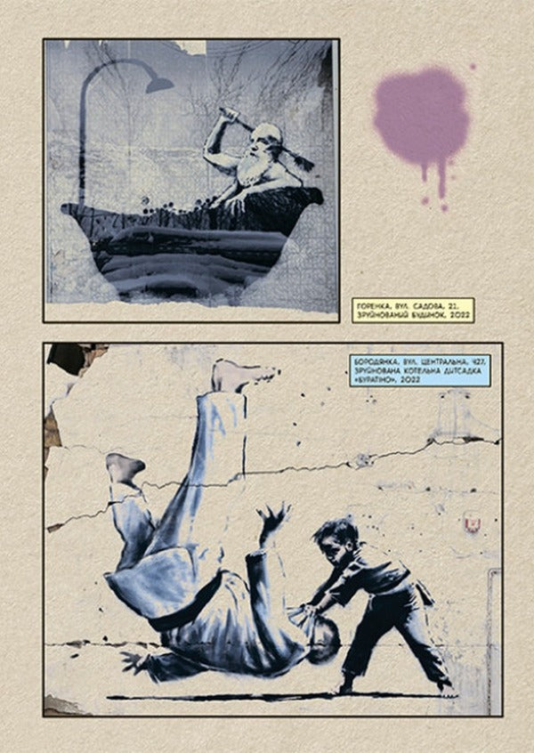 Розказана у формі класичного коміксу, ця графічна біографія запрошує дізнатися про легендарного британського стріт-арт митця в ідеальному середовищі — на вулицях міста.