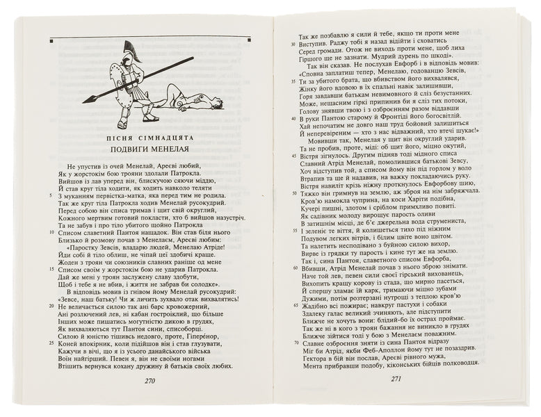 Гомерівський епос складається з двох епопей — 'Іліади' і 'Одісcеї'. Головний герой 'Іліади' — Ахілл. Гнів Ахілла, якого образив верховний вождь Агамемнон, — основний мотив, що організує сюжетну єдність поеми. Картини героїчних двобоїв чергуються з картинами мирного життя в обложеній Трої, а також з не позбавленими гумору сценами суперечки богів на Олімпі.