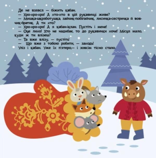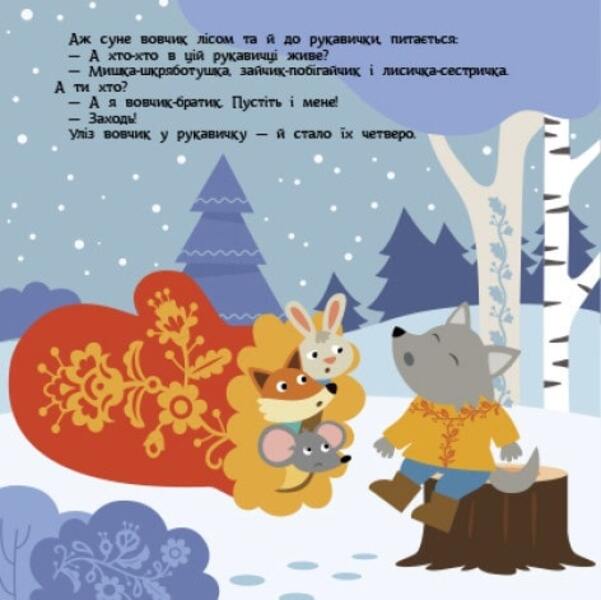 'Театр в кишені' серія ігрових книг для першого знайомства з українськими народними казками. 'Рукавичка' одна з них. Цей казковий театр можна влаштовувати вдома, на прогулянці, в дитячому садочку. Для дітей від 2 років та їхніх батьків.
