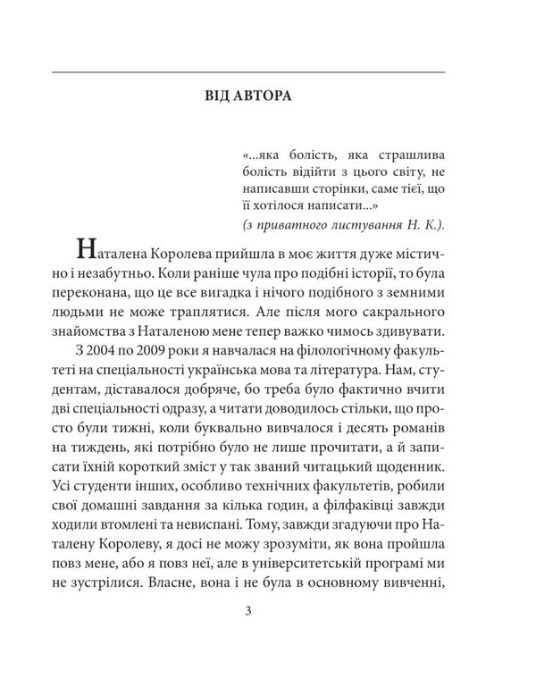 Недаремно українську письменницю Наталену Королеву (1888— 1966) вважають найекзотичнішою постаттю у нашій літературі. Її життя — чудова підстава для створення захоплюючого серіалу, де є все — таємниці мадридського двору, королівські інтриги, велике кохання, карколомні воєнні пригоди і майже злидні в останні роки…