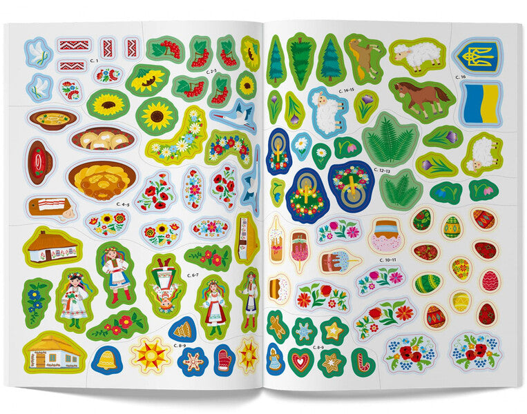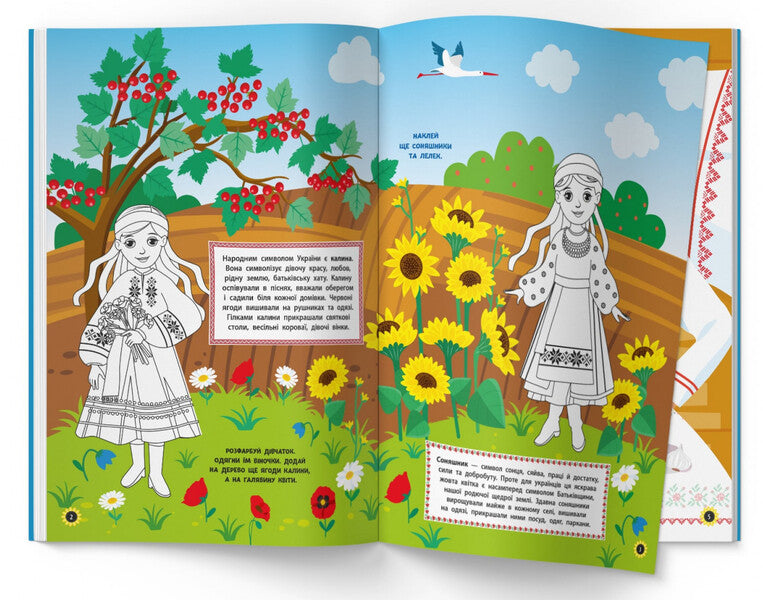 країна — наша прекрасна Батьківщина! Тут безліч мальовничих краєвидів, щедра та родюча земля, талановиті й працьовиті люди. Наша співоча мова, героїчна історія та багата культура відомі в усьому світі! Читай цікаві факти, розфарбовуй малюнки, наклеюй наліпки і пізнавай нашу рідну Україну разом із серією 'Патріотичні наліпки'!