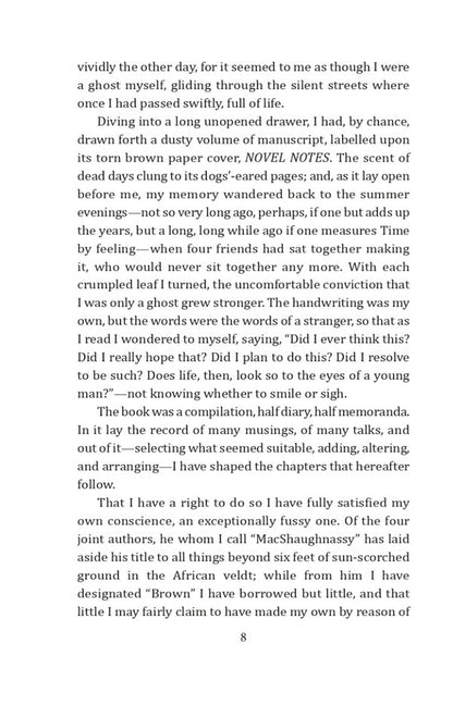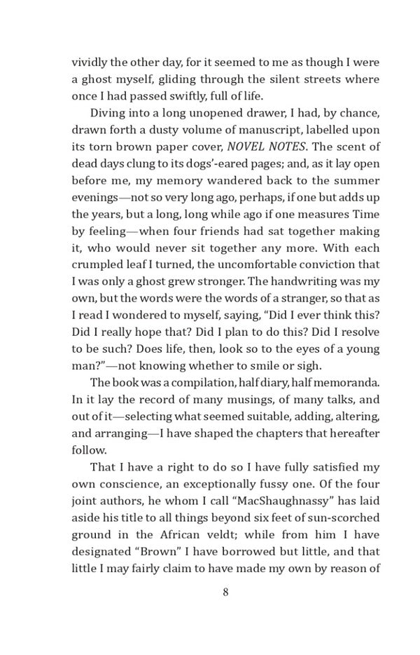 Novel Notes is a book by Jerome K. Jerome (1859–1927) about how a group of friends who are recognizable characters from the famous duology Three Men in a Boat and Three Men on the Bummel. This time, they gathered in a cozy living room, and decided to write the best ever novel in the world. On the pages of this book, readers will find quite a few answers to various questions.