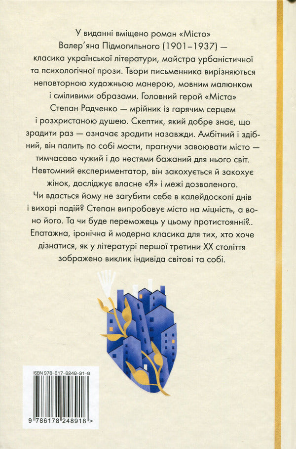 У виданні вміщено роман 'Місто' Валер’яна Підмогильного (1901–1937) — класика української літератури, майстра урбаністичної та психологічної прози. Твори письменника вирізняються неповторною художньою манерою, мовним малюнком і сміливими образами.
