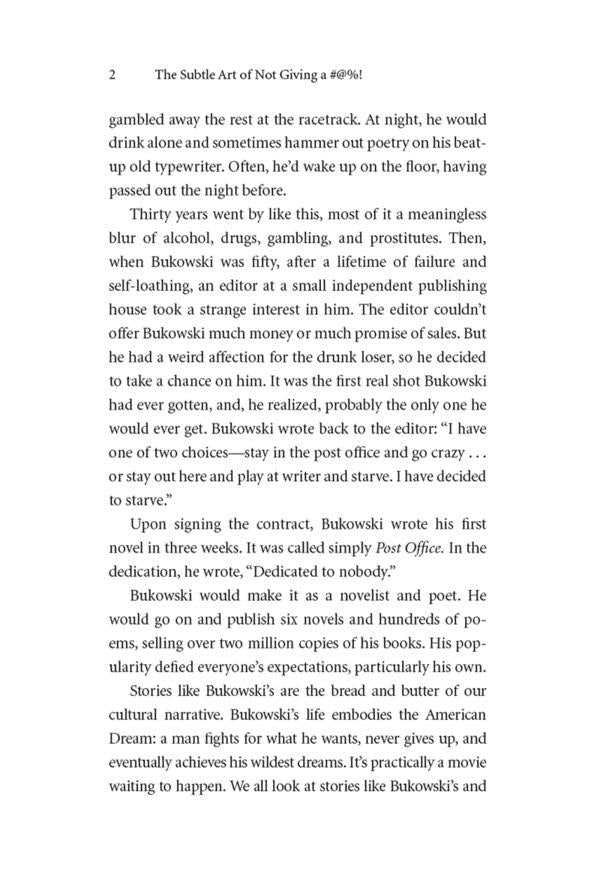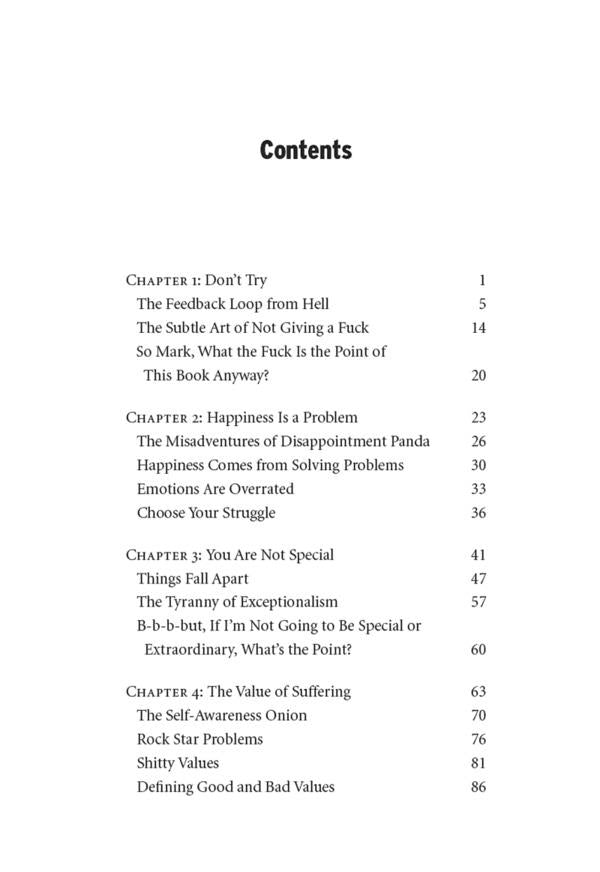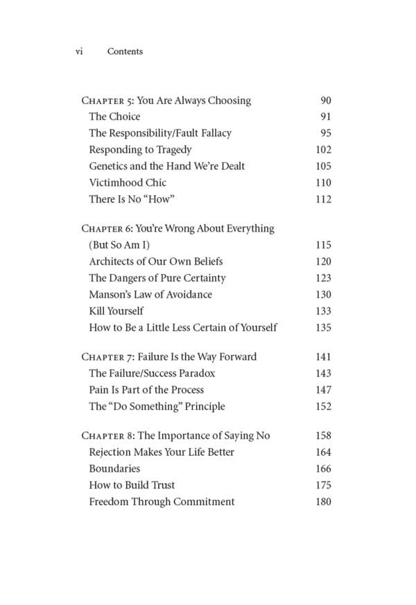 Manson makes the argument, backed both by academic research and well-timed poop jokes, that improving our lives hinges not on our ability to turn lemons into lemonade, but on learning to stomach lemons better. Human beings are flawed and limited'not everybody can be extraordinary, there are winners and losers in society, and some of it is not fair or your fault.' Manson advises us to get to know our limitations and accept them. Once we embrace our fears, faults, and uncertainties, once we stop running and avoiding and start confronting painful truths, we can begin to find the courage, perseverance, honesty, responsibility, curiosity, and forgiveness we seek.