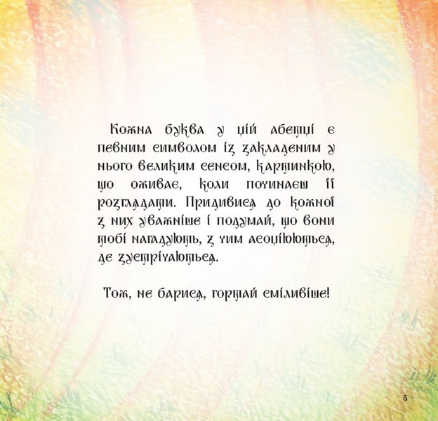• першу чергу для діток віком від 4 років. Їм буде цікаво розглядати малюнки, фантазувати над буквами, вчити літери, слухати вірші, а згодом читати самостійно рутенією.