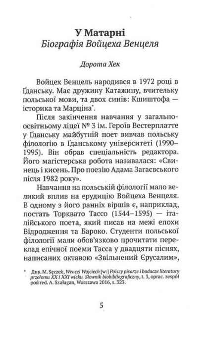 Поетичний дебют Войцеха Венцеля 1995 року ставши сенсанцією: хоча автор і був пов'язаність язаний з літературним журналом 'Brulion', він був визнаний продовжувачем традицій польського неокласицизму.