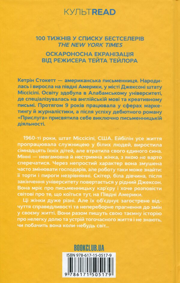 1960-і роки, штат Міссісіпі, США. Ейбілін все своє життя пропрацювала служницею у білих людей, виростила сімнадцять їхніх дітей, але втратила свого єдиного сина. Мінні — невгамовна й нестримна жінка, з якою не варто сперечатися. Через свій непростий характер вона змушена часто змінювати господарів, але роботу таки може знайти: її торти і пироги незрівнянні. Скітер, біла дівчина, після закінчення університету повертається у рідний Джексон. Вона мріє про письменницьку кар’єру і хоче розповісти світові про те, що коїться тут, на Півдні Америки.
