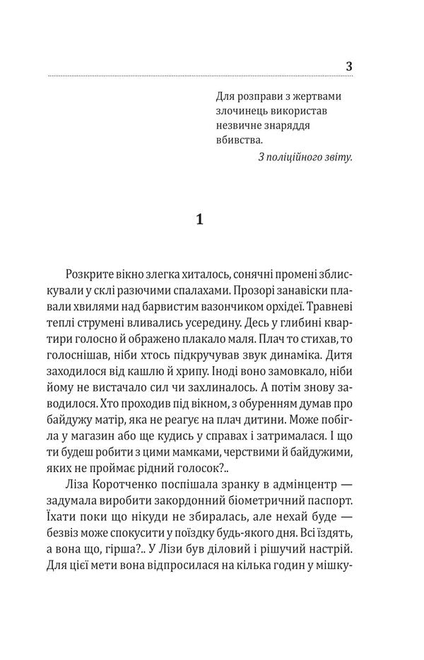 Поблизу поліції в квартирі знаходять убитою молоду дружину колишнього боса мафії Яну Монацьку. Жінка лежить посеред кімнати гола, а біля неї грається дитина. 'Швидка', яку викликала сусідка, встановлює, що жертву убили уколом у вухо. Вбивця роздягнув жінку, скупав маля. І зник. Начальник поліції полковник Нагорняк разом із відділом детективів розпочинає слідство. Капітан Чорний звертає увагу, що нове вбивство може бути пов’язане з загибеллю самого мафіозі, якого закололи у груди напилком і засунули у ящик біля магазину. Слідчі встановлюють, що у місті розпочалася нова серія вбивств. Вбивства ритуальні, обставлені символами і мають прихований зміст.
