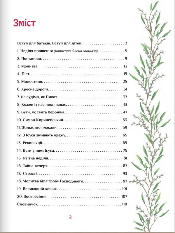 П’ятирічна Мартуся і трирічний Павлик вирушають у мандрівку. Ця мандрівка незвичайна – вона пролягає через усі дні Великого посту до свята Воскресіння Христового. Діти знайомляться з важливими християнськими поняттями, дізнаються більше про молитву, милостиню, піст, прощення, милосердя. Кожній з цим тем присвячена окрема історія – загалом їх двадцять. Усі складні слова авторка пояснює в тексті або у словничку в кінці книжки. Також після кожної розповіді є запитання і цитати зі Святого Письма, які можна обговорити з дитиною.
