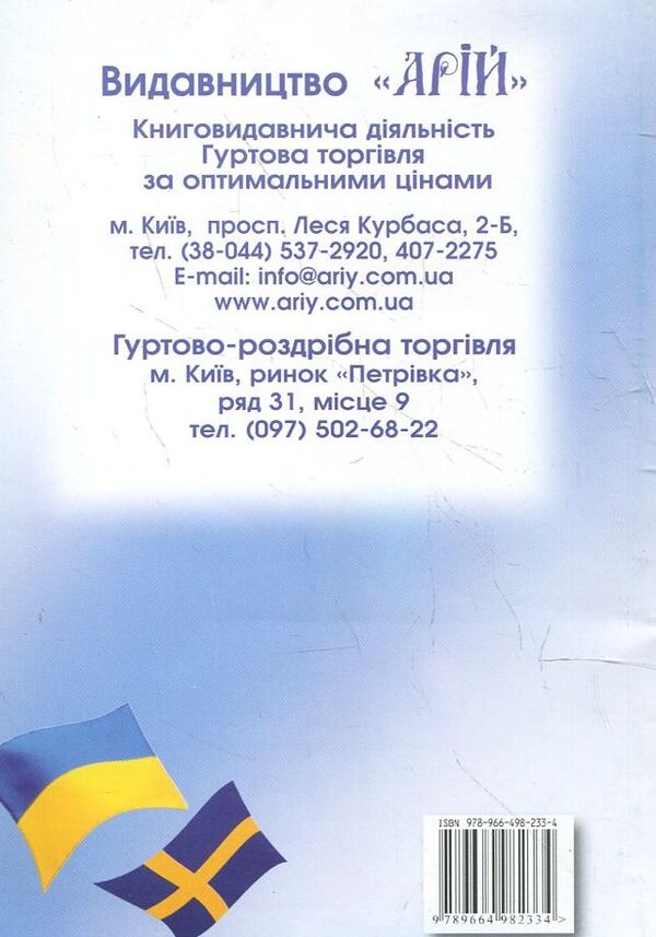 Українсько-шведський розмовник призначений передусім для громадян України та українців інших країн, які виїжджають до Швеції, а також для школярів, студентів і всіх, хто вивчає шведську мову. Розмовник містить найуживаніші слова та словосполучення, а також корисну для туристів інформацію країнознавчого характеру.