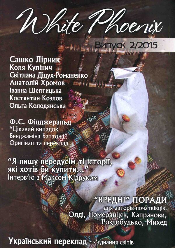 На сторінках нового літературного часопису 'White Phoenix' ви знайдете для себе безцінні поради бувалих зубрів вітчизняної літератури, новини мистецького світу, рецензії на новинки, які ще не встиг прочитати, а також твори таких, як сам, та можливість згодом приєднатися до авторського колективу.